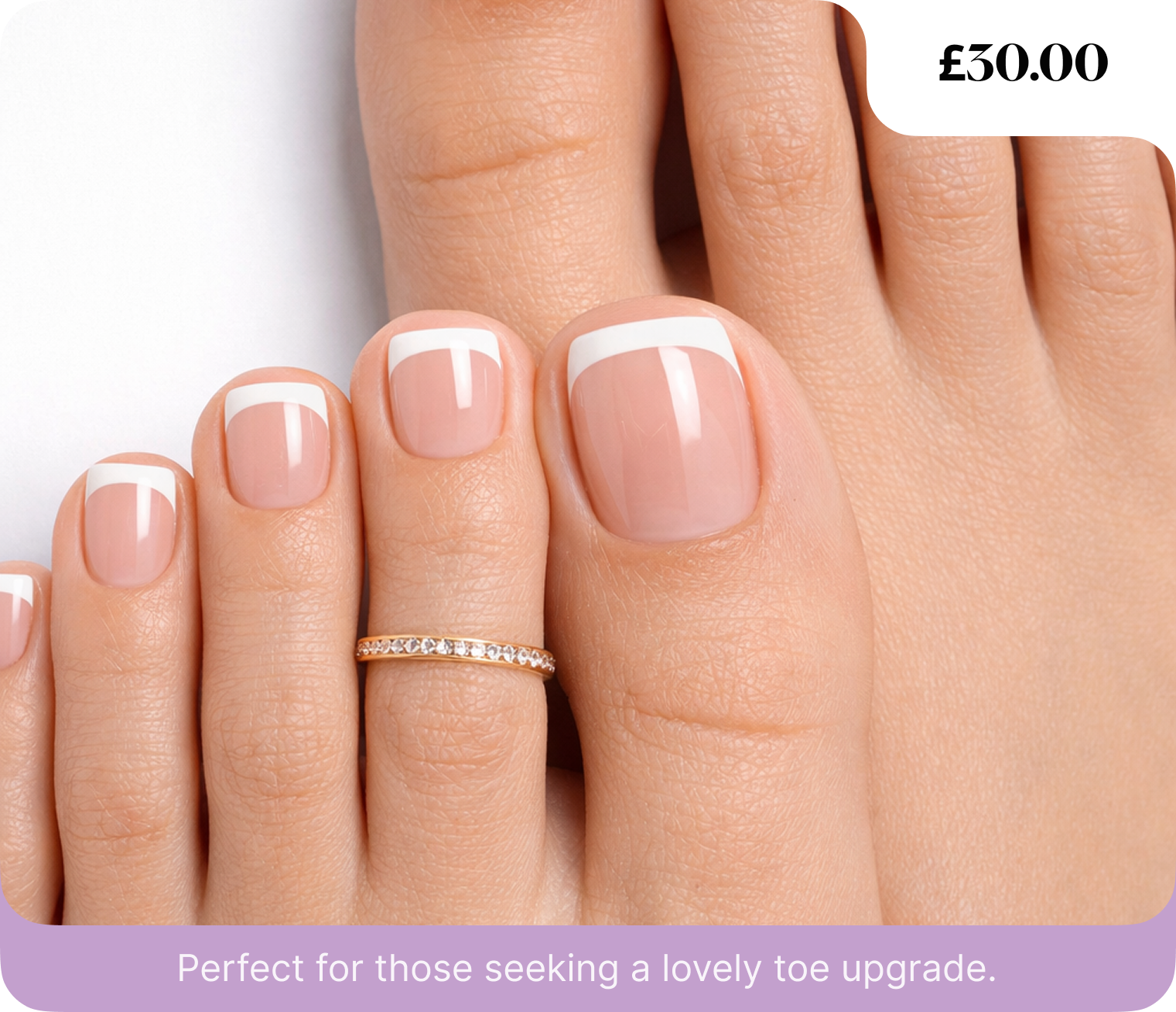 Enjoy a long-lasting gel polish French tip. This service offers a sleek, polished look for your toenails.